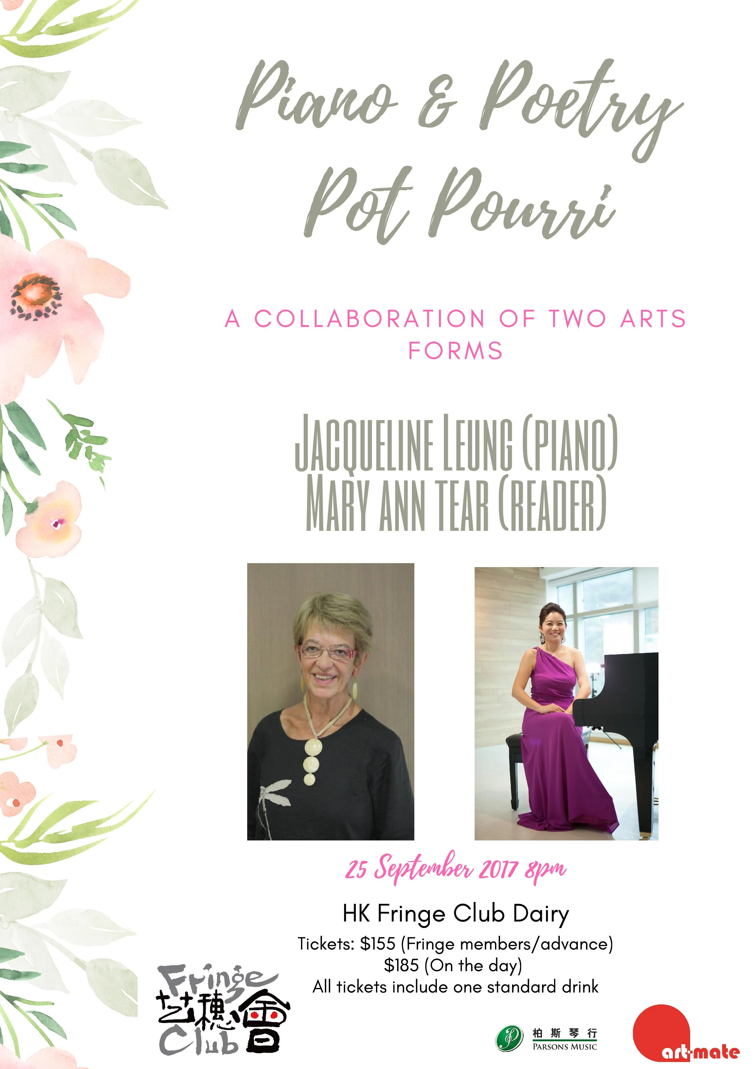 An evening of entertainment interspersing poetry readings and piano music performance. Reader: Mary Ann Tear